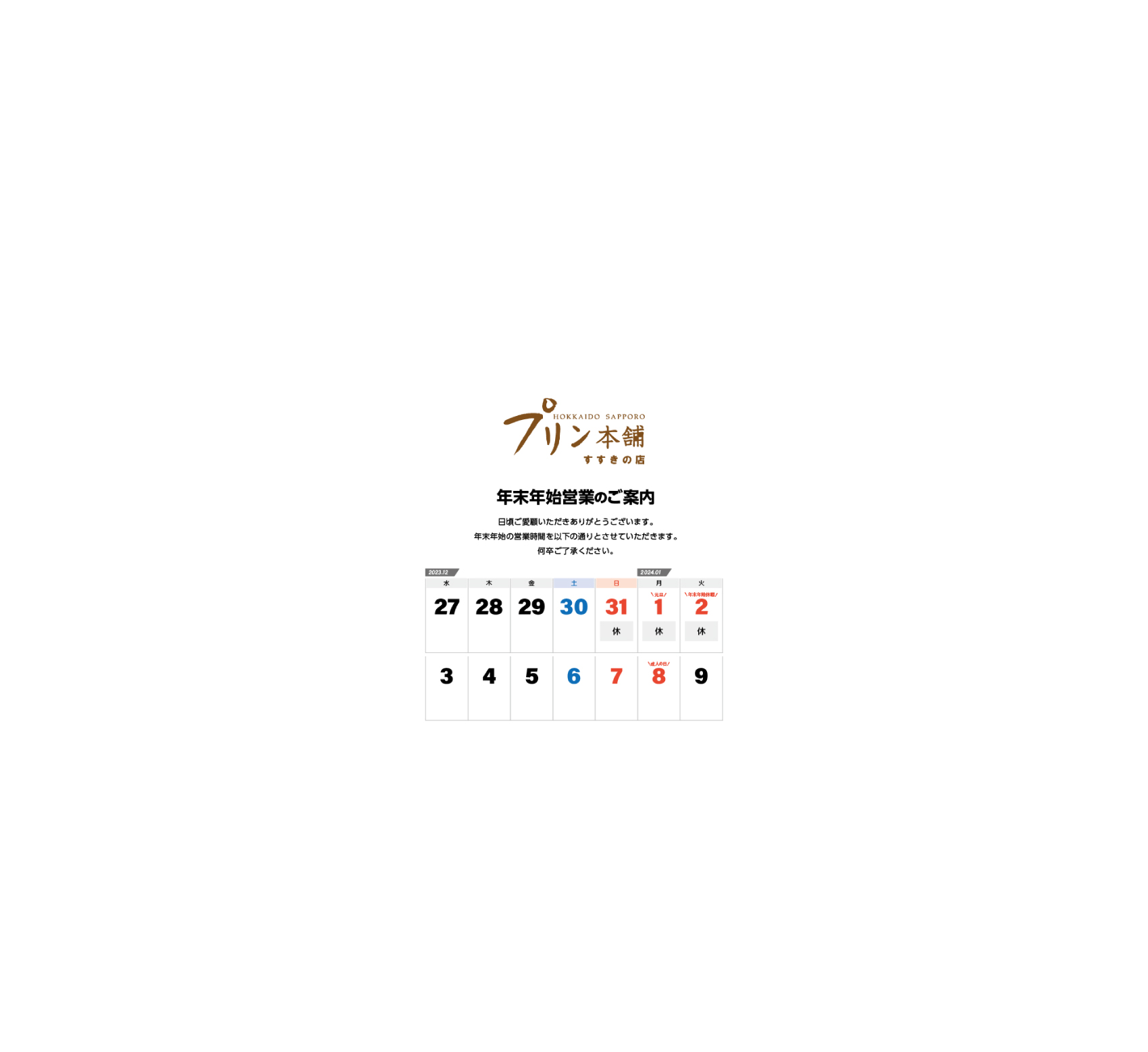年末年始営業のお知らせ